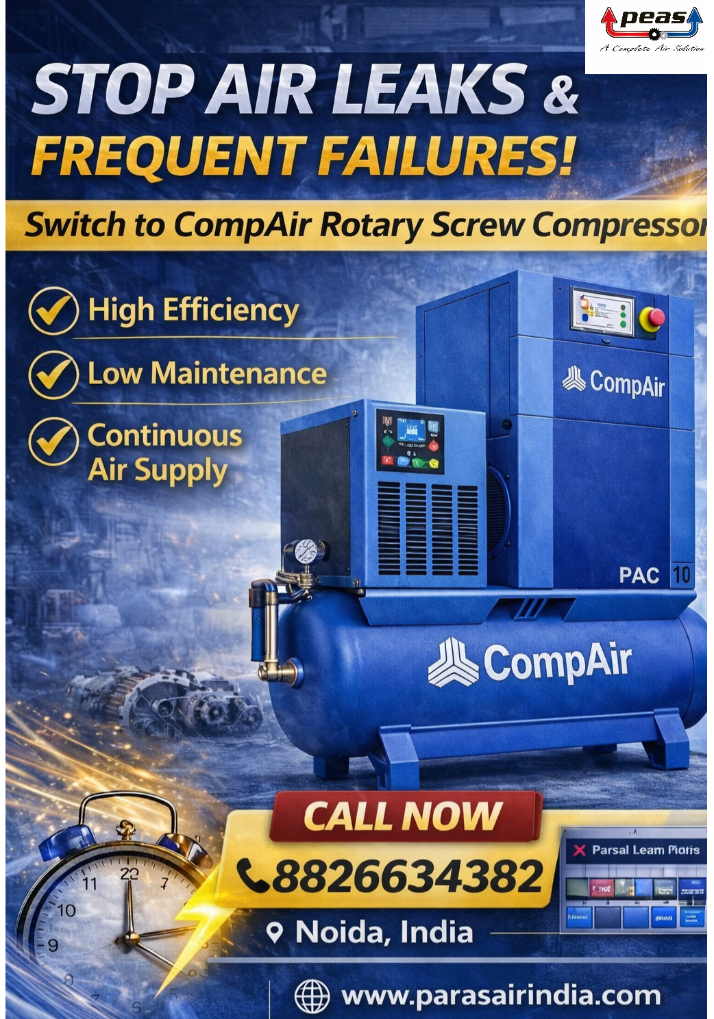 If you are looking for the best air compressor dealer in Noida or a reliable compressor service provider in India, Paras Engineers and Services is your one-stop solution.