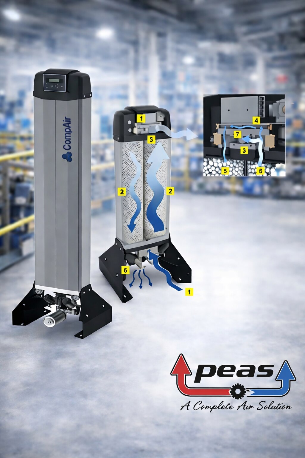 High-performance desiccant air treatment By combining the proven benefits of desiccant drying with modern design, CompAir provides an extremely compact and reliable system to dry and clean compressed air efficiently. The CompAir A-Series of heatless regenerative desiccant dryers have proven to be the ideal solution for many thousands of compressed air users worldwide in a wide variety of industries.